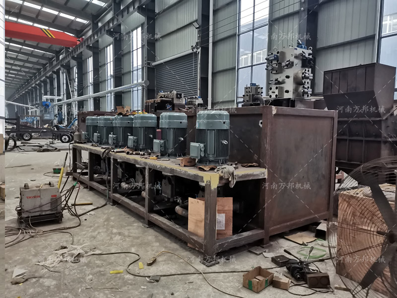剪切機(jī)在原理上通過(guò)自動(dòng)上料料箱,即料抓取至上料料箱后,廢料由輸送帶自動(dòng)送至刀口剪切處,送料速度可由調(diào)速電機(jī)調(diào)速。料箱兩側(cè)裝有側(cè)擠壓油缸,大型廢料如報(bào)廢汽車(chē),無(wú)法通過(guò)龍門(mén)剪剪切刀口的,可通過(guò)側(cè)擠壓油缸將廢料擠壓縮小,再通過(guò)輸送臺(tái)送至剪切刀口處切斷。